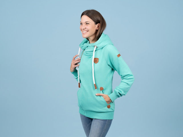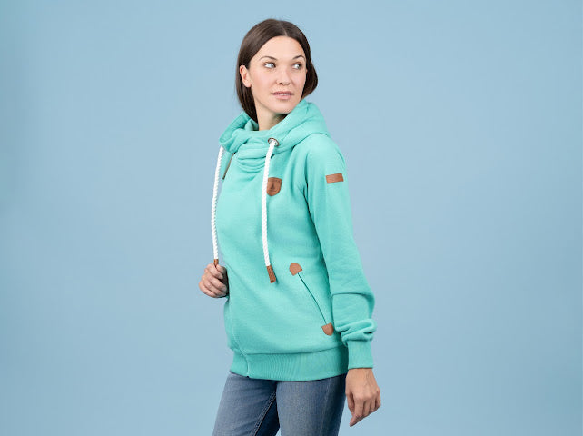These hoodies! Thick and amazingly soft! Athena styles have a hood with a full asymmetrical zipper.
